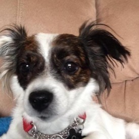 This is Eco, a very recent placement in our foster program. She is a 3-4 year old female Papillon/Jack Russell terrier mix, fully vetted and spayed.