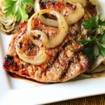 3. While chops are grilling, brush slices of onion with oil, and sprinkle with salt and black pepper. Grill onion slices until they are translucent and browned, 3 to 4 minutes per side. To serve, place chops and onions on warmed plates, and brush the chops with the reserved honey-soy glaze.