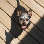 Lizzie is a small 5 year old Chorkie (Chihuahua/Yorkie) who only weighs 12 lbs. She loves adults, kids and other dogs. This spirited little girl will bolt out the doorway or off the property if given the opportunity so needs to be on a leash unless in a fenced yard.