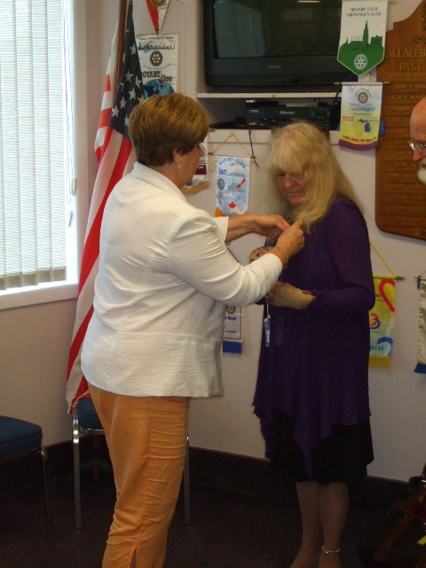 Londry was presented with a pin by Carman Titus, assistant district governor for the Rotary Club, at a recent ceremony at the Wallaceburg building.