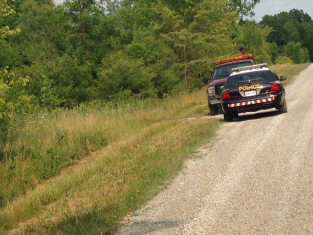 Before the abandoned vehicle was towed from the scene on Mandaumin Road yesterday evening, police told us the suspect was spotted going into an woodlot.