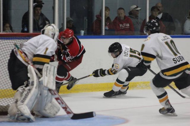 Wallaceburg’s 16-year-old rookie Brendan Ritchie scored for the Lakers, tying the game up at 2-2 at the 7:53 mark of the third. Josh Berkvens assisted on Ritchie’s goal.