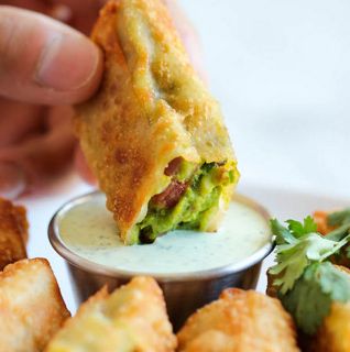 Working one at a time, place avocado mixture in the center of each wrapper.