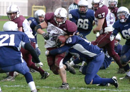 The first photo shows Donkers when he was the running back for the Wallaceburg Tartans. Here is is fighting for some yards against UCC in the semi-final match in Chatham on Saturday, Oct. 31, 2009. Wallaceburg won 21-7 over the previously undefeated UCC Lancers.