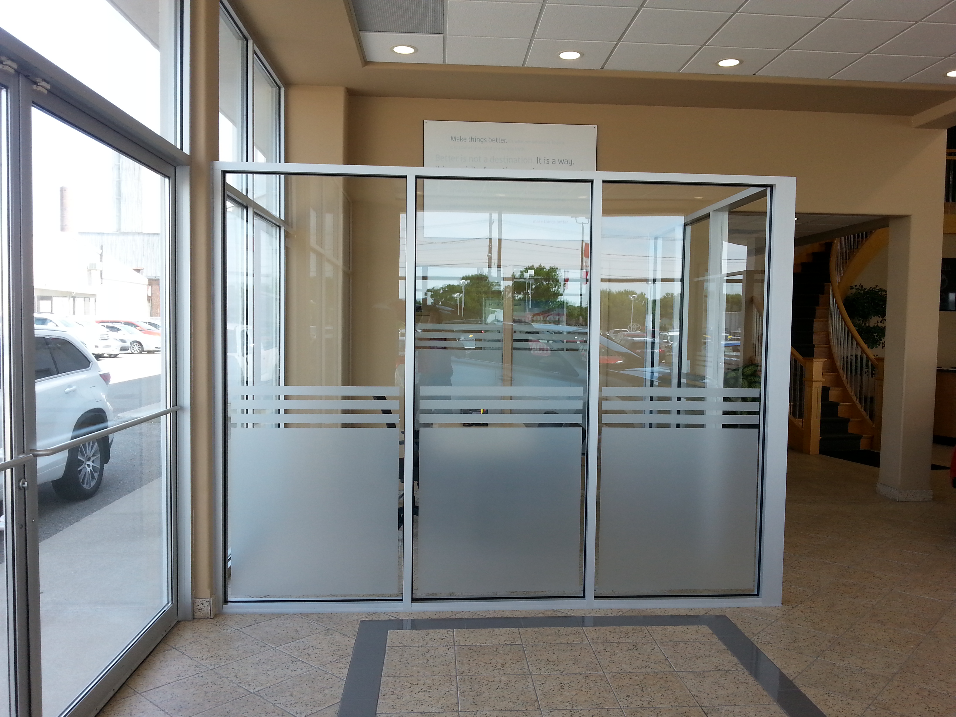 Cj Window Tinting spent the day in Chatham installing frosted film at a local car dealership..