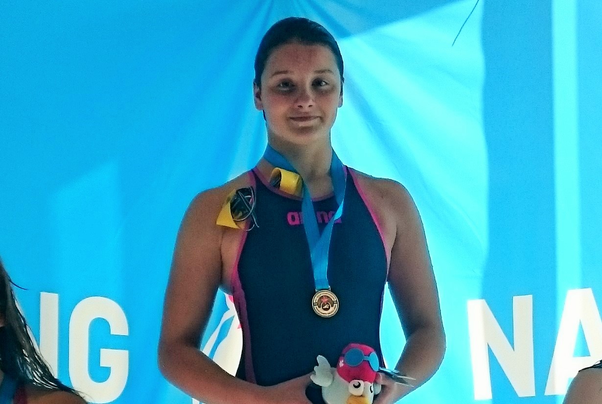 After already capturing gold in the 200m Backstroke and the 50m Backstroke, the 14-year-old Chatham Y Pool Sharks swimmer topped the podium in the 100m Backstroke with a personal best time of 1:03.80.