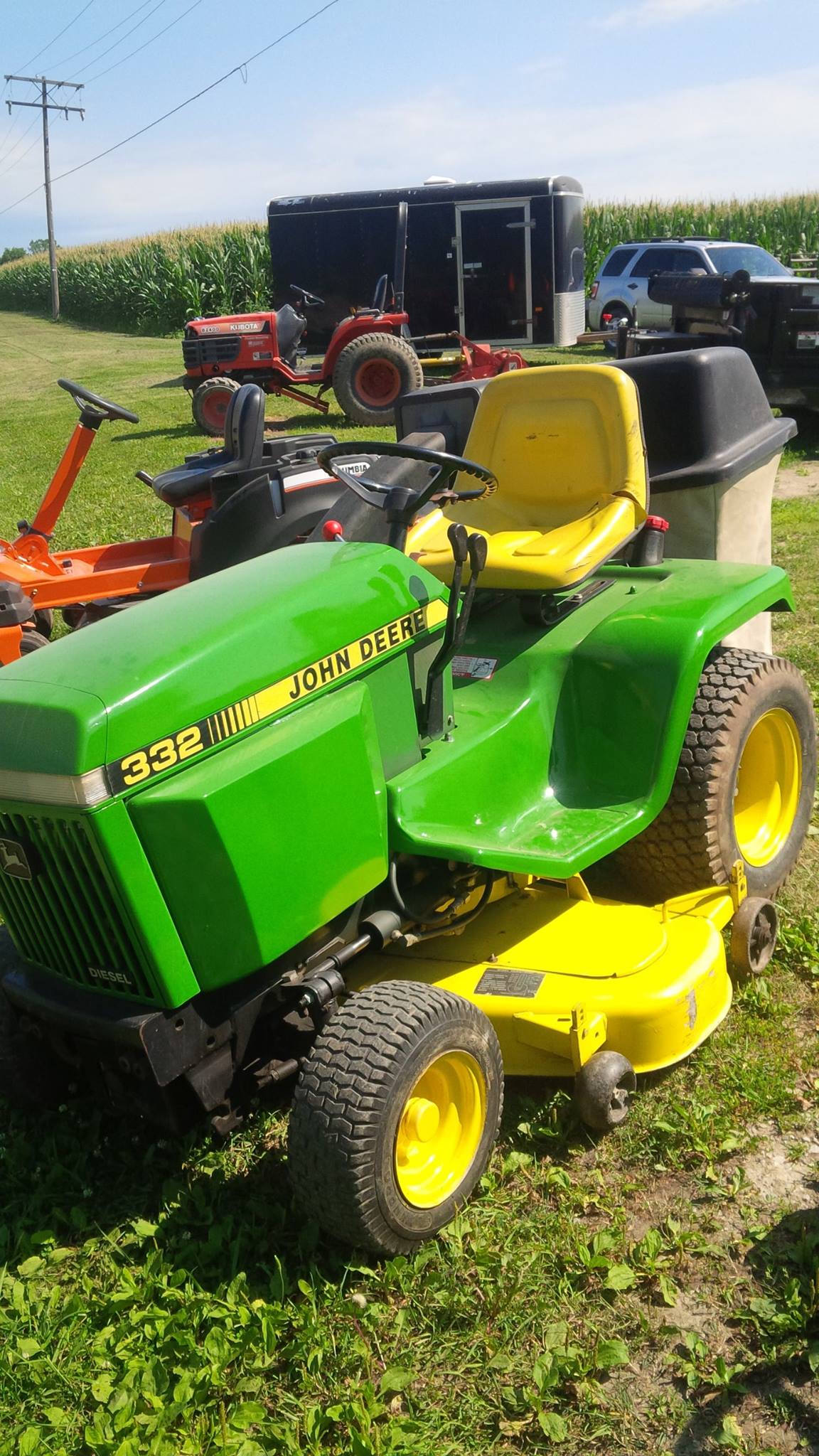 Stop in and check out this well maintained used John Deere 332 Lawn Tractor, for sale for only $3999.00. Comes with the Power Flo Bagger, this John Deere is a 3 cyl. 50″ Diesel and runs great!