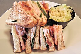 2. To make a double-decker club: On a clean work surface, arrange 3 bread slices in a row. Spread 1 tablespoon mayonnaise over 1 side of each bread slice. Place a lettuce stack on top of the first bread slice, top with 2 tomato slices, and season with salt and pepper, to taste. Place 2 slices bacon over the tomatoes (broken to fit neatly if necessary) and top with 1/8 of the turkey (without letting any hang over the sides). Season the turkey with salt and pepper, to taste. Repeat with the second bread slice. Carefully place the second layered bread slice on top of the first layered bread, turkey side-up. Cover with the third bread slice, mayonnaise side-down.