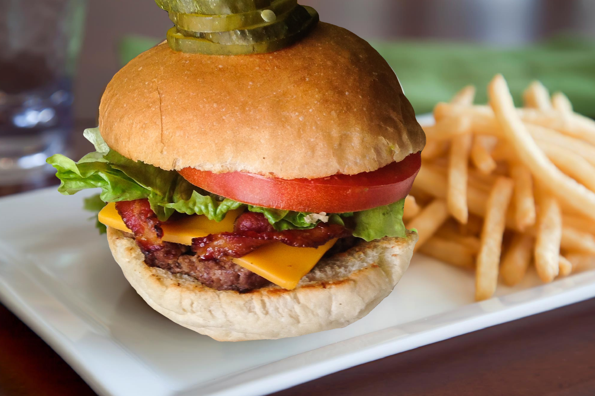 Enjoy a 1/4 lb lean ground beef hand packed patty with cheese, bacon, BBQ sauce, sautéed mushrooms and onions with lettuce all on a toasted bakery fresh bun for only 4.99! Saving you 1.00.