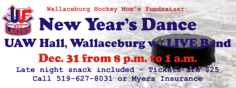 This story is sponsored by the Wallaceburg Hockey Mom’s, who are holding a New Year’s Eve fundraiser at the UAW Hall in Wallaceburg.
