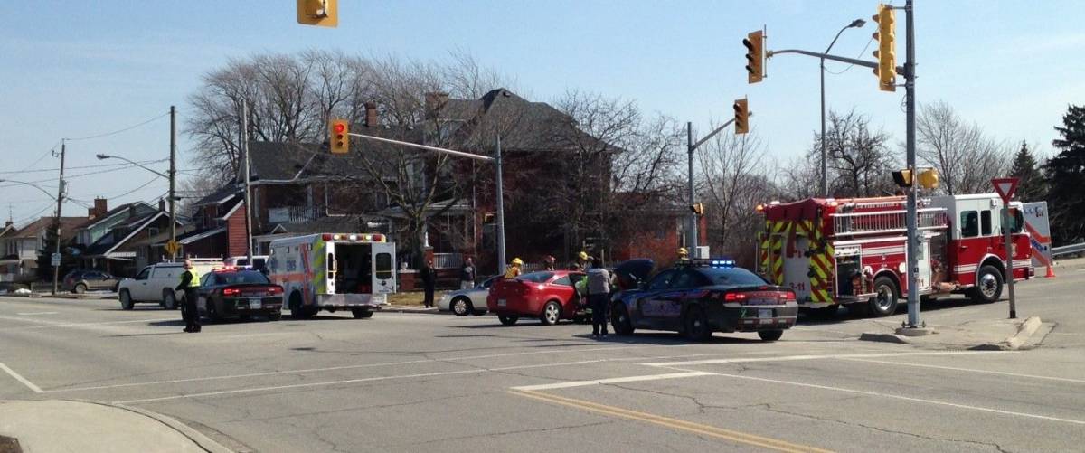 Emergency crews were at the scene of a crash at the base of the Murray Street Bridge in Wallaceburg, at the Margaret Avenue and Main Street intersection.