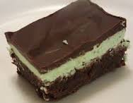 3. To prepare mint layer, combine powdered sugar, ¼ cup melted butter, and next 3 ingredients (through food colouring) in a medium bowl; beat with a mixer until smooth. Spread mint mixture over cooled cake.