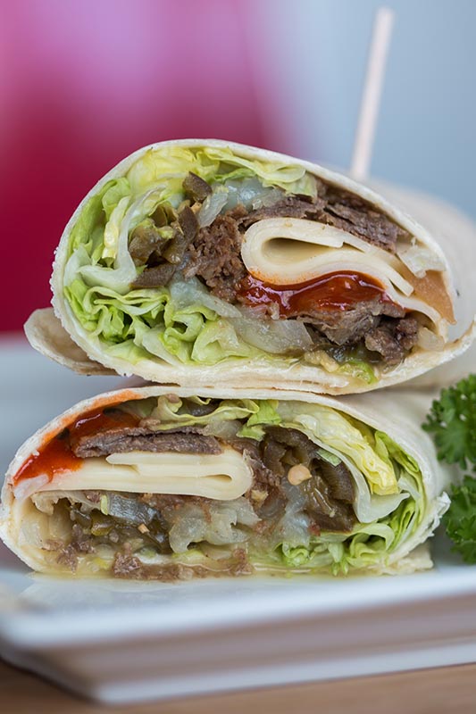 Cream of Cauliflower or Beef Vegetable soup with 1/2 Philly steak wrap