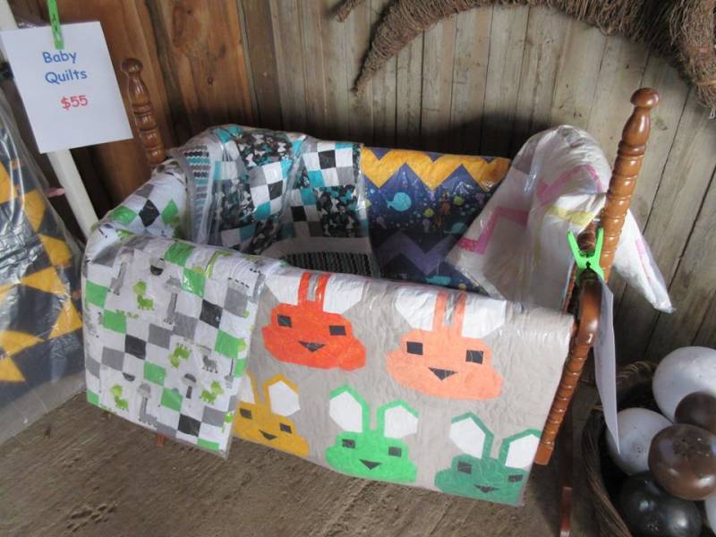 We are back again at Tacq’s Garden Market. There is a great selection of my Big Chair quilts and new this year is a crib full of bright baby quilts.