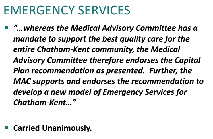 A Chatham-only ER plan is being endorsed by the Medical Advisory Committee (MAC) of the Chatham-Kent Health Alliance (CKHA.) The panel of doctors announced during a press conference, held at the Frank and Mary Uniac Auditorium in Chatham on Tuesday, their unanimous support for the hospital’s capital and operating plans.