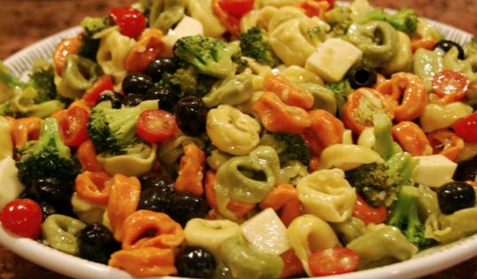 3. Combine remaining ingredients in a large bowl. Add pasta, cover and chill.