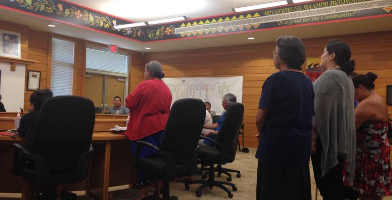 “We’re going to break until (Wednesday) and deliberate this gas line,” Miskokomon said.
