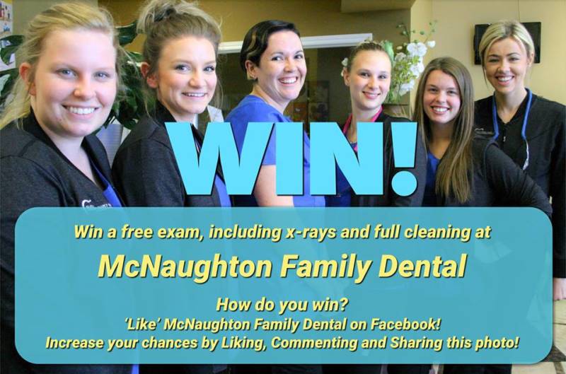 Win a FREE exam, including x-rays and full cleaning at McNaughton Family Dental.