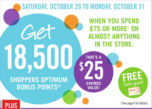Today is the last day to claim 18 500 optimum bonus points when you $75 or more on almost everything in the store. That’s a $25 savings!