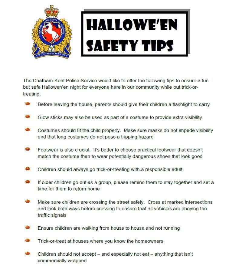 The Chatham-Kent Police have some tips for everyone, in order to have a fun and safe Halloween.