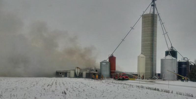 Upon arrival, police observed a large livestock barn already completed engulfed by fire.