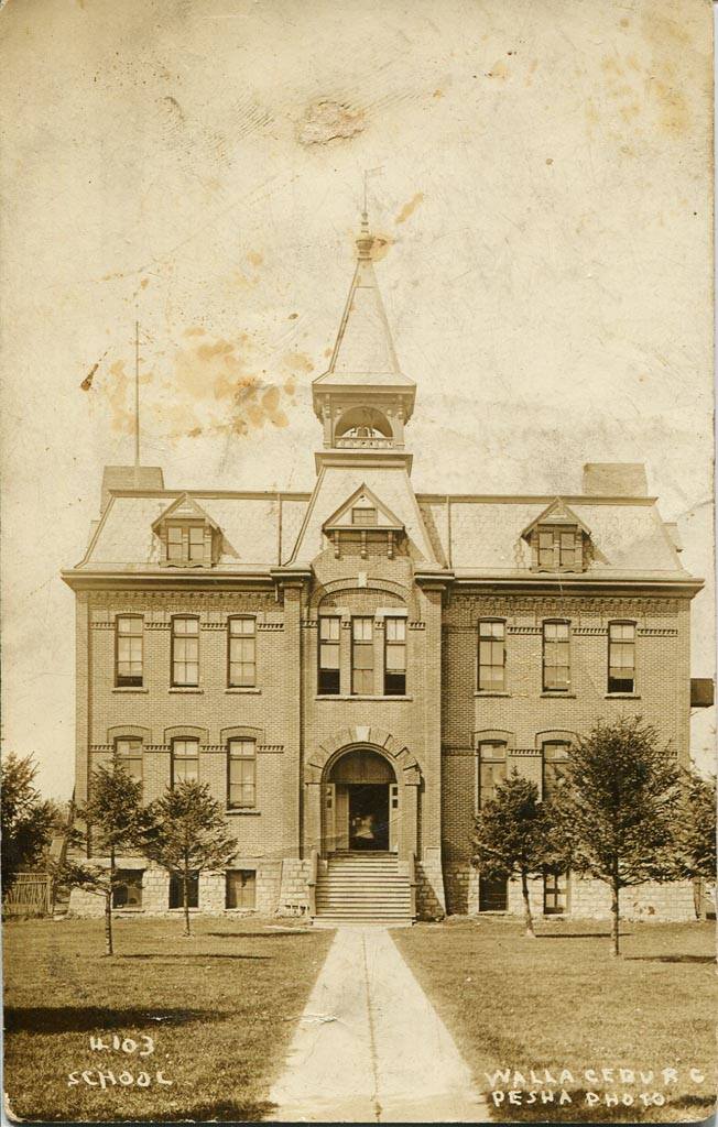 Here is an old photograph of the Wallaceburg High School at the corner of Lisgar and Elizabeth. Do you know what year this is?