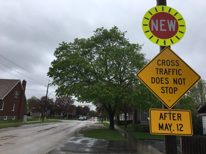 Municipal officials say the northbound and southbound stop signs on Murray Street will be removed, leaving a two-way stop control for eastbound and westbound traffic on Reaume Avenue.