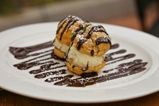 When ready to serve, cut in half horizontally and fill with ice cream of your choosing. (I prefer a really high-quality vanilla.) Top with warm Chocolate Sauce.