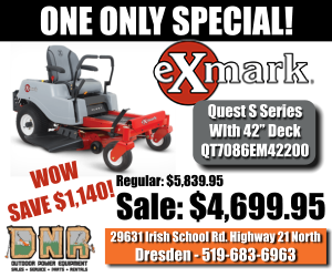 This contest is a part of the DNR Outdoor Power Equipment WOW (Win On Wednesday) feature on the Sydenham Current.
