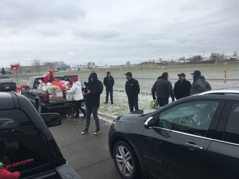 Trembley said a crew from General Motors Company (GMC) made the trek from Toronto to Wallaceburg for the cruise. The GMC team brought a brand new Chevy Silverado filled with food donations for the fundraiser, plus they also brought a camera crew with them.