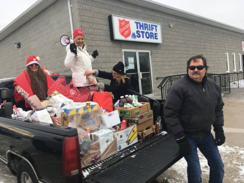 Jayce’s truck was filled with food donations, which will be given to the Salvation Army food bank in Wallaceburg.