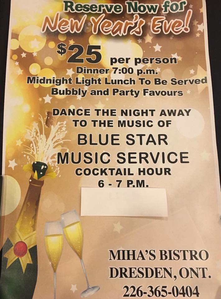 New Year’s Eve Party πŸ’ƒπŸΌπŸ•ΊπŸΌ at Miha’s Bistro in Dresden 226-365-0404