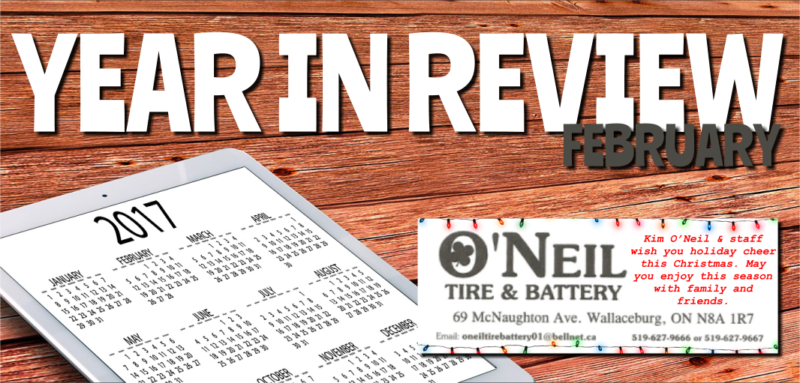 Our look back at what made the news in February 2017 is sponsored by O’Neill Tire and Battery in Wallaceburg.