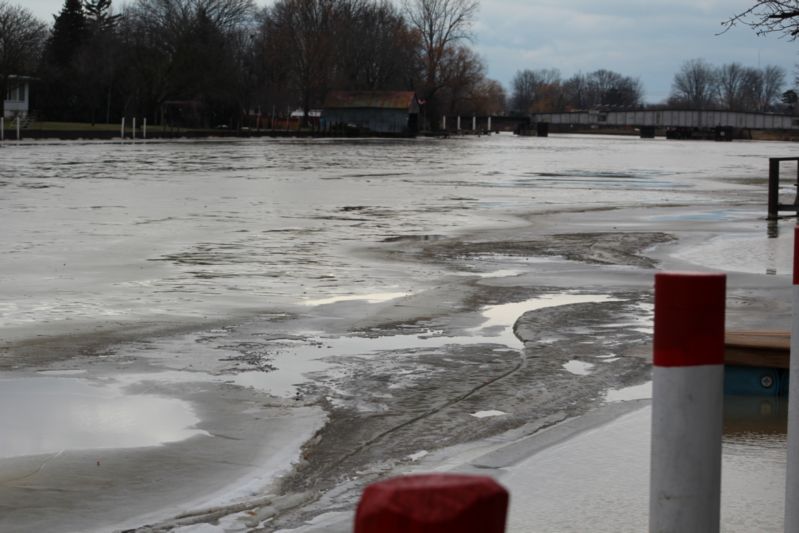 “Minor ice jamming and localized flooding is possible in the lower reaches of the watershed between Wallaceburg and Dresden as ice begins to shift.”
