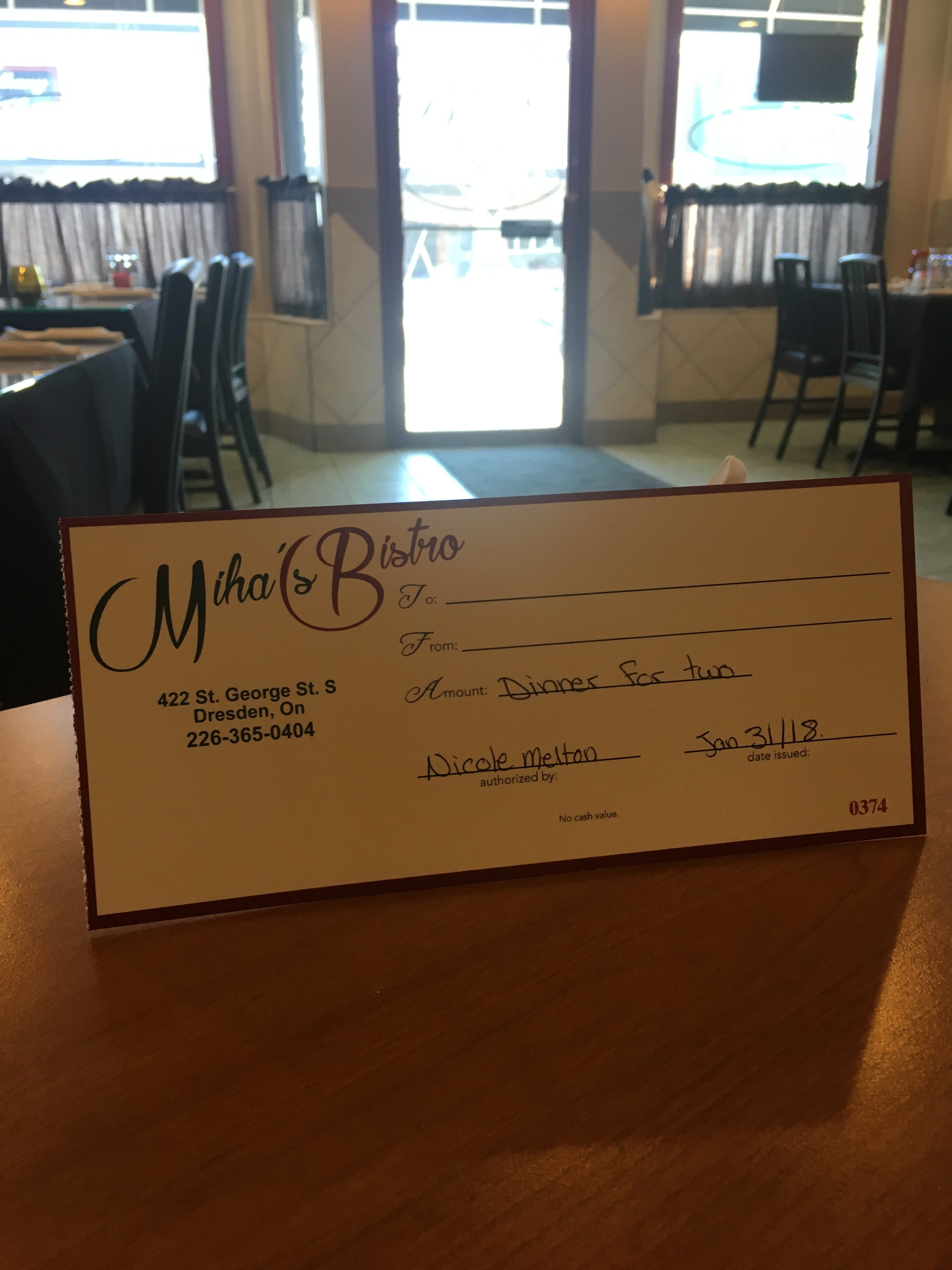 Check out our Facebook page, Like our page, like the post, comment and share to be entered ina. Contest to win a certificate for dinner for two here at Miha’s!
