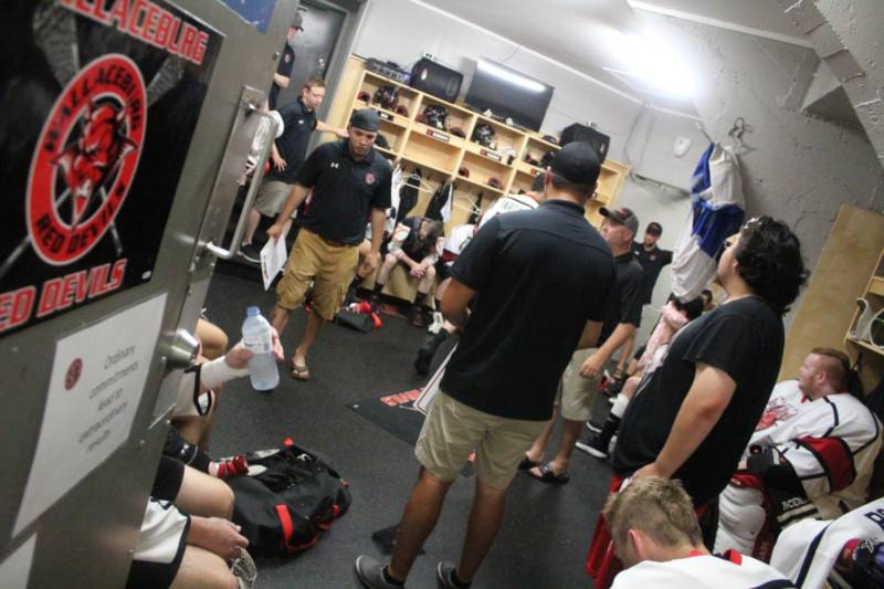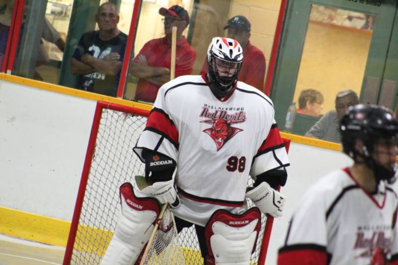 The hot and humid game was slowed down several times throughout, as the referees stopped play to have moisture wiped up on the Wallaceburg Memorial Arena floor.