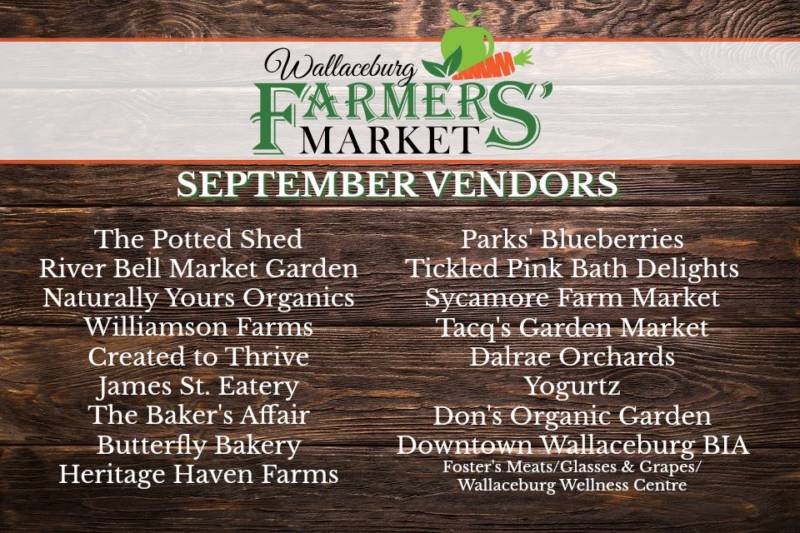 The final Wallaceburg Farmer’s Market of the season is taking place tomorrow from 8 a.m. until 12 p.m. Click here for a list of vendors.