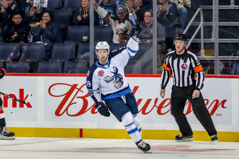 Wallaceburg’s Seth Griffith scored his first goal with the Manitoba Moose on Friday, October 12, in a 2-1 Moose win over the Belleville Senators.