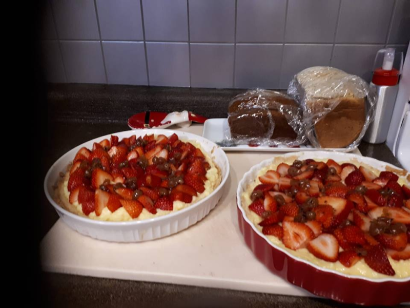 Wash, hull and dry berries. Arrange over surface of flan. Melt jelly over low heat; cool slightly. Carrefully spoon over berries. Chill at least 4 hours before serving.