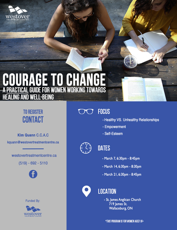 The Westover ‘Courage to Change’ program for women 16 years and older is meant to be a practical guide for women working towards healing and recovery.