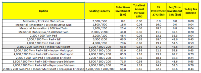 In the report, staff has included a host of options, which includes a financial breakdown of each: