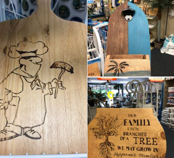 Father’s Day is coming up June 16th. Come into Splash and check out some great burned wood art that Mo has been working on!