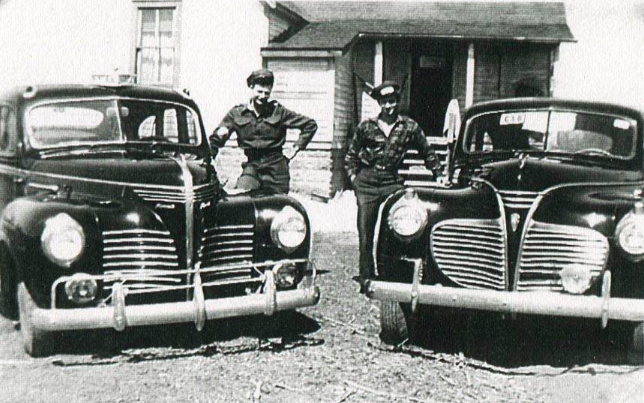 Here is an old photograph of Wes and Len Turner next to their cars in the summer of 1946.