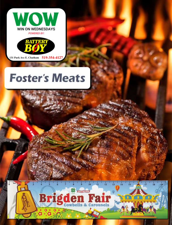 With help from our WOW sponsor Battery Boy, Foster’s Meats is giving away a delicious prize this week! PLUS, the winner will win some FREE passes to the Brigden Fair!