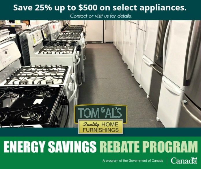 Here at Tom & Al’s we are pleased to be a participating retailer in the Government of Canada’s Energy Savings Rebate Program. Reduce energy use, save money, and address climate change by saving 25% up to $500 on qualifying energy efficient products. Contact or visit us in-store for more details.
