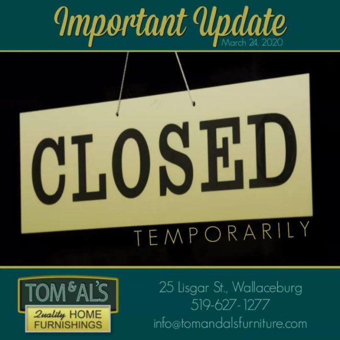 Temporary closure of Tom & Al’s Furniture