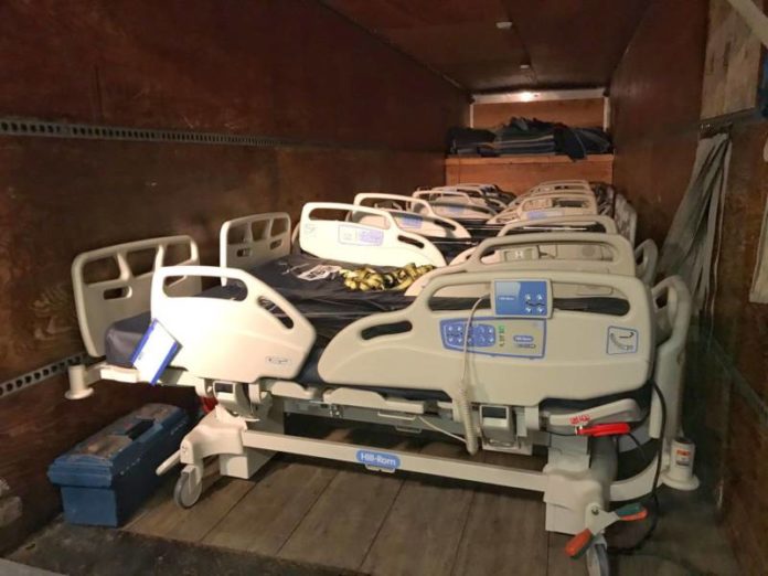 College officials say on Thursday, March 26, the College arranged for the transfer of 30 beds, medical carts, tables and personal protective equipment (PPE) including much-needed gloves, gowns and N-95 masks to be relocated to hospital.