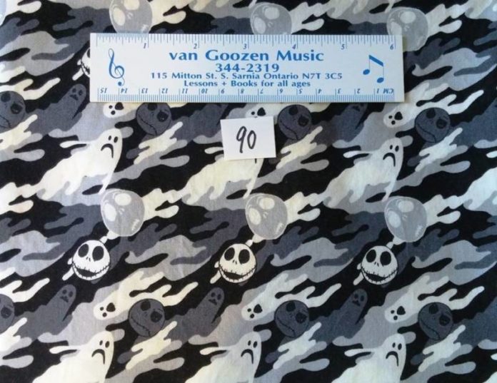 We have fun fabric we are using to make masks (this one is 090 Lightweight cotton. Nightmare Before Christmas design.)