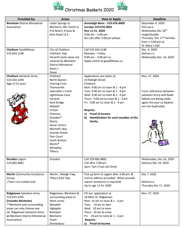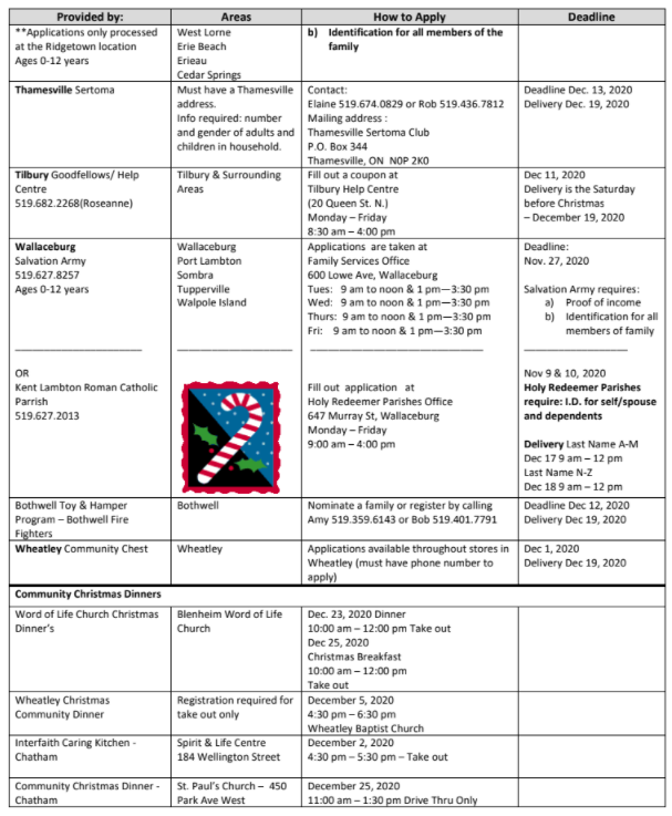 Chatham-Kent Public Health is releasing the updated list of all the Christmas Hamper and Holiday Meals available in Chatham-Kent.
