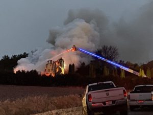“The call came in at 3:30 p.m. with reports of a fire under the house. 55 firefighters were on scene battling high winds and snow. They worked to find the seat of the fire until they were forced to a defensive as the structure became fully involved.”